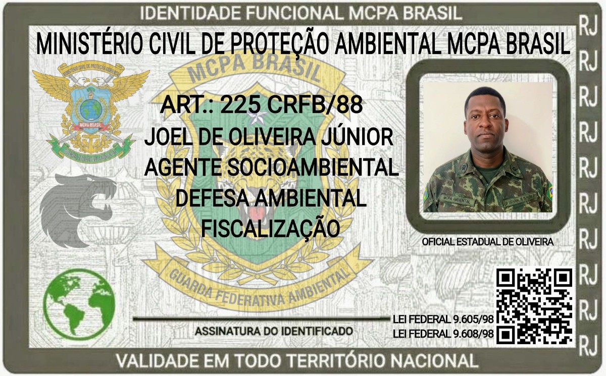 O Sr. Joel de Oliveira Júnior com registro na Defesa Civil do Estado do Rio de Janeiro, com a Subordinação das Forças Armadas Exército, Marinha, Aeronáutica especialista em combate a incêndio florestal, auxiliar de veterinária, especialista em captura de fauna, formado em inclusão na selva, socorrista, especialista em abrigos, especialista em administração, formação especialista em educação ambiental, Professor de Educação Física, e Registrado no Conselho Nacional de Meio Ambiente - CONAMA